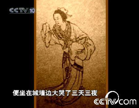 節(jié)目指出,第一個記述崩城之事的人,是西漢末年的劉向。他在《烈女傳》中先重述了《左傳》中杞粱妻的故事,然后他繼續(xù)寫到:杞粱妻沒有子嗣,娘家婆家也都沒有親屬,夫死之后成了個孤家寡人。杞粱妻“就其夫之尸于城下而哭之”,哭聲十分悲苦,過路人無不感動。十天以后,“城為之崩”。唐代的有關記載,使杞粱妻的故事大變了模樣。杞粱由春秋的齊人變成秦朝的燕人;杞粱妻的名字出現(xiàn)了,她姓孟名仲姿,或姓孟名姜女;杞粱的死因不再是戰(zhàn)死疆場,而是因避役被捉后筑于城墻之內(nèi),所以其妻要向城而哭;而筑于城墻之內(nèi)的死尸實在太多了,只有滴血認骨才能辨別。杞粱妻的故事經(jīng)過六朝、隋唐時代的加工,把崩城和秦始皇聯(lián)系在了一起,這是一個不小的創(chuàng)造。
