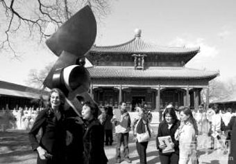 昨天,希臘著名畫家、雕塑家索菲亞·瓦瑞當(dāng)代藝術(shù)展在孔廟舉行。索菲亞·瓦瑞說(shuō),她第一次看到孔廟的照片時(shí),覺(jué)得“這樣莊嚴(yán)得讓人恐懼的地方,也許不適合展出現(xiàn)代風(fēng)格的雕塑作品”。但當(dāng)她真正踏入孔廟的時(shí)候,覺(jué)得這建筑如此“神圣而神秘”,“似乎有圣人守護(hù)我的作品”,于是,索菲亞·瓦瑞把她在過(guò)去15年中創(chuàng)作的7件青銅作品和15幅油畫作品,陳列在剛剛修繕完畢的孔廟展出?讖R國(guó)子監(jiān)管理處馬法柱主任說(shuō):“這是孔廟首次舉辦這樣的當(dāng)代藝術(shù)展!闭褂[持續(xù)到4月20日結(jié)束。(記者 趙楠楠 蒲東峰 攝)