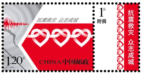 《抗震救災 眾志成城》附捐郵票20日發(fā)行(圖)
