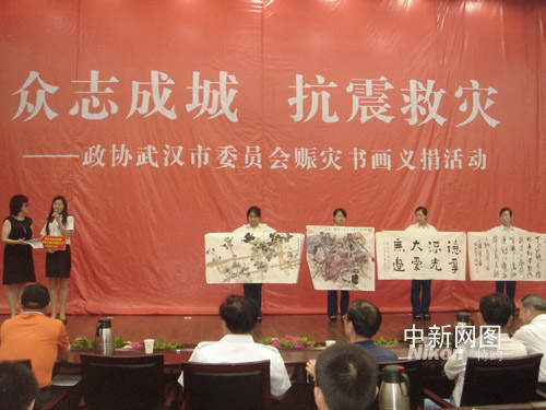 為此,武漢市政協(xié)23日貫徹中央抗震救災(zāi)戰(zhàn)略部署,發(fā)揮人民政協(xié)的優(yōu)勢和特色,組織書畫藝術(shù)家、企業(yè)家進行書畫義捐、拍賣活動,全力援助災(zāi)區(qū)生產(chǎn)自救和災(zāi)后重建工作。