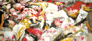 病中完成巨幅汶川悼亡作品《不忍》,捐贈給廣東美術館展出,作品兩邊準備白紙給觀眾印手印