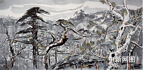 本次藝博會(huì)參展作品、著名畫(huà)家吳冠中中國(guó)畫(huà)《香山春雪》。