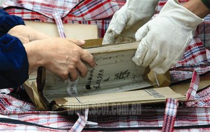 “這些受潮或遭肢解的檔案卷必須要經(jīng)過除濕、蒸干、消毒、殺蟲、凍干等諸多保護(hù)環(huán)節(jié)。以蒸干為例,失去水分后的檔案會(huì)變得像一塊‘硬磚’,只能小心地一層層剝開,每揭一頁(yè)夾一層干燥紙來(lái)保護(hù)!斌w態(tài)有些發(fā)福的張新吃力地蹲在地上,仔細(xì)地清點(diǎn)裝有檔案的塑料編織袋,“今天的發(fā)掘應(yīng)該說(shuō)比較順利,一上午就運(yùn)走了兩卡車,約有8000多卷,但不少檔案已受潮或碎裂,后期還要仔細(xì)修補(bǔ)和保存!睆埿抡f(shuō),他們事先準(zhǔn)備了1000個(gè)編織袋,但到中午時(shí)分基本告罄,只得緊急調(diào)來(lái)1000個(gè)支援,“我們樂觀地估計(jì),這次搶救性挖掘能救出五六萬(wàn)卷文物檔案,基本保住了羌族‘血脈’!”