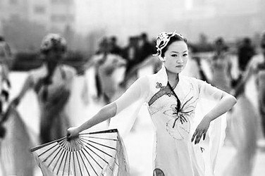 “海派秧歌”手持扇子翩翩起舞。