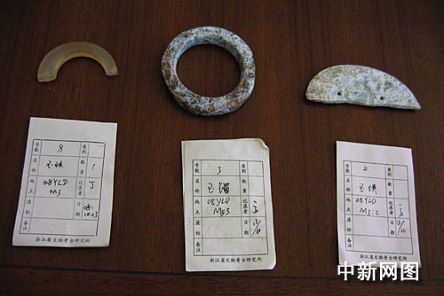 在杭州市余杭區(qū)經(jīng)濟(jì)開(kāi)發(fā)區(qū)小林村附近燈籠山遺址,考古人員正在進(jìn)行墓葬后續(xù)清理,浙江省文物考古研究所的工作人員介紹,這次出土的玉璜、玉鐲、玉玦都出自這個(gè)3號(hào)墓葬,同時(shí)出土的還有部分陶器。