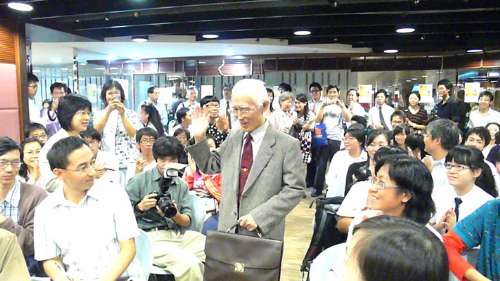 剛于當天由南京趕抵香港的余光中,精神矍鑠地與太太一起出席分享會,一到場便贏得久候的讀者們熱烈掌聲。