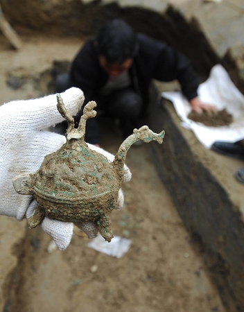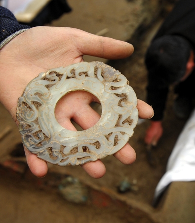 核心提示:近日,考古人員在襄樊市長虹路一建設(shè)工地進行搶救性發(fā)掘時,發(fā)現(xiàn)一大型魏晉早期墓葬,并從該墓葬后室中發(fā)掘出玉璧、水晶珠、青銅熏爐等數(shù)十件珍貴器物。
