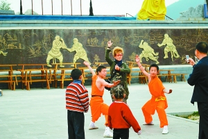 雷師傅是登封的出租車司機(jī),開出租車已有六七年了。攀談時(shí),這位土生土長的中年漢子告訴我們,每年,來自全國各地的孩子像潮水般到這里投師學(xué)藝,“好多外國人也到這里學(xué)習(xí)中國功夫。”說這話時(shí),雷師傅話語間透著自豪。