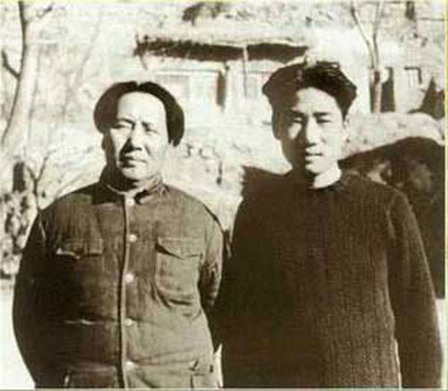1946年毛澤東與毛岸英在延安。