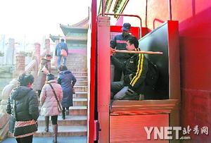 在午門展廳外的西馬道上,還有另一部垂直升降梯,該升降梯在臺階上覆蓋了玻璃鋼板作為通道。展廳門檻上也做了斜坡處理,乘坐輪椅的游客不下輪椅,就可以到達展廳。據(jù)工作人員介紹,這兩部升降機總價約250萬元。其中午門外的價值約200萬元,保和殿前的價值約50萬元。
