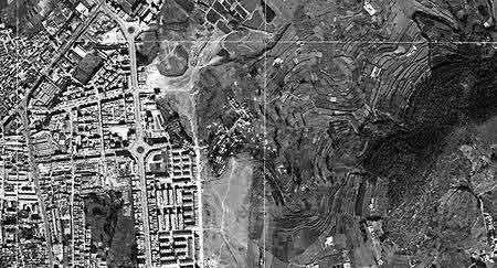 美國考古專家亨特教授一直揣著一張上個世紀(jì)70年代的衛(wèi)星圖片,這里清晰地顯示了一個長方形的晉城鎮(zhèn)區(qū)域內(nèi)存在著一片長方形古城址,學(xué)者們把新發(fā)現(xiàn)遺物的點(diǎn)與這張衛(wèi)星圖作對比,有了驚喜發(fā)現(xiàn):這里正好處在衛(wèi)星圖上古城址的東北角上。目前的衛(wèi)星圖顯示,這個古城址被隨后大量的現(xiàn)代建筑所遮蓋,發(fā)現(xiàn)有遺物的地點(diǎn),也是晉城鎮(zhèn)中唯一還沒有被現(xiàn)代建設(shè)疊加的部分,正好是當(dāng)時(shí)衛(wèi)星圖上城址的一角。學(xué)者們開始興奮起來。