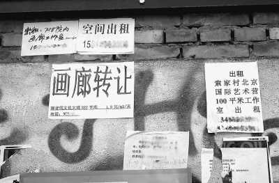 “798”藝術(shù)區(qū)內(nèi)公告欄上張貼的出租轉(zhuǎn)讓信息。季 露攝