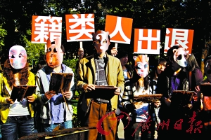 昨日下午2時30分許,行為藝術家流野、黎永泰等帶領40余人在廣州人民公園舉行儀式,宣布“退出人類籍”,并表演了“退人類操”。他們還選出10個退出人類后甘愿進化為動物的先進分子進行了宣誓。誓詞的大意為:我甘愿退出人類籍,順應天理,遵守大自然的規(guī)律與公道,執(zhí)行造化的暗示,正義地反對人類為所欲為的戰(zhàn)爭、掠奪與虛偽,為宇宙、自然界的真正和諧解放而奮斗終身!此舉引來數百人聚集圍觀,公園方面如臨大敵,派出保安現場維持秩序。儀式結束后,40余個宣稱已經是動物不是人類的行為藝術家,還舉著“退出人類籍”牌步行15分鐘,到附近菜市場慰問了待宰的動物,表示慰問和默哀。