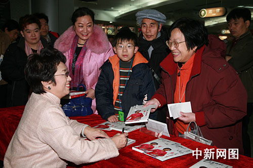 中新網1月19日電 1月17日上午10點30分,北京電子音像出版社在西單圖書大廈舉行《李玉芙——京劇唱腔專輯》簽售儀式。著名京劇表演藝術家、梅蘭芳親傳弟子、梅派名家李玉芙和著名話劇表演藝術家石維堅出席了該儀式,F場聚集了眾多李玉芙的忠實觀眾,爭相與心目中的大師合影留念,氣氛十分熱烈。