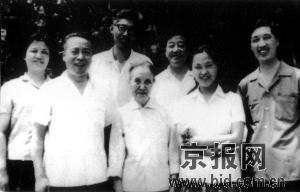 編輯部的崔道怡(左三)、王南寧(右二)和作者(右一)同作家柯巖(左一)、王愿堅(右三)、冰心(前排中)在會議期間和張秉貴(左二)合影。