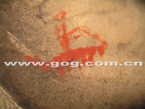 據介紹,去年12月16日,貴州省考古所所長助理李飛、研究員楊洪在普定縣考古所所長陳發(fā)武帶領下,到化處鎮(zhèn)考古時,無意中在該鎮(zhèn)中學對面的空山腳下巖石上發(fā)現(xiàn)一些紅色印跡,經仔細辨認后,這些紅色印跡被確認為巖畫。隨后,幾位考古專家又繼續(xù)往半山坡上尋找,共發(fā)現(xiàn)了10余幅巖畫。這些古巖畫中,許多畫清晰可辨,有栩栩如生的小狗,有耀武揚威騎馬的將軍等等。