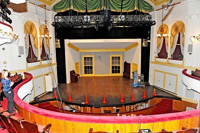 在福特劇院里,不少當(dāng)時(shí)留下的歷史小細(xì)節(jié)都被完好無(wú)損地保留下來(lái)。舞臺(tái)外沿上依舊留有劃擦的痕跡,那是刺客布斯跳下舞臺(tái)時(shí)情急留下的。而在窄小的總統(tǒng)包廂里,當(dāng)日的場(chǎng)景似乎近在眼前:樓下的舞臺(tái)上正上演著喜劇《我們美國(guó)人的親戚》(Our American Cousin),與此同時(shí)布斯無(wú)聲無(wú)息地挑開紅色的幕簾,在距離林肯不到兩英尺的后方,布斯的大口徑手槍指向了林肯的后腦。