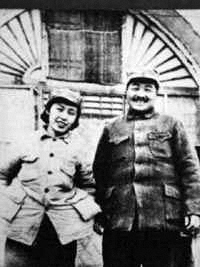 1938年雙十節(jié),由王明的夫人孟慶樹介紹(一說陳賡介紹),40歲的八路軍副總司令彭德懷,在延安娶了北師大著名的浦氏三姐妹(潔修、熙修、安修)中的小妹、20歲的嘉定姑娘浦安修(1918-1991),婚后無子女,但共度戰(zhàn)爭歲月,感情甚篤。廬山會議后,浦安修幾經(jīng)斟酌,終與彭德懷在60年代脫離關(guān)系。當(dāng)時(shí)老彭切開一個(gè)大梨,二人各吃了一半。