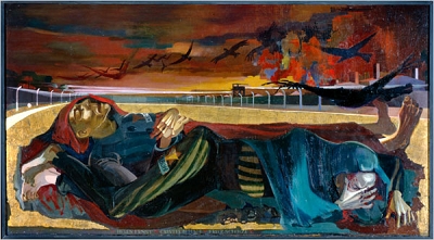 Richard Peter Sr.早在1940年代就拍攝了一系列德累斯頓的尸體和廢墟。Hans Grundig在1947年畫的《致法西斯的受難者》直接揭示了大屠殺的真相,作者本人曾在集中營(yíng)中度過(guò)艱難歲月,而這部作品也是在集中營(yíng)內(nèi)發(fā)生的慘絕人寰的暴行的早期證據(jù)。