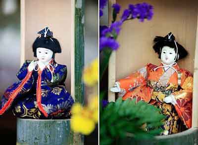 送完禮物,枝子回到家中,從自己的臥室里拿出好多偶人,擺放在偶人架上。這是她歷年珍藏的。在日本,每年過“女兒節(jié)”的時(shí)候,父母和親朋都會(huì)送一些偶人給女孩子。女孩們會(huì)將歷年得到的小偶人都珍藏起來,過節(jié)這天再把它們搬出來,和自己一起歡度節(jié)日,直到出嫁時(shí)再將它們帶走。此時(shí),枝子的母親也將米酒、粽子、紅白綠三層菱形餅等和玩偶一起陳列在客廳里,家中節(jié)日的氣氛更濃了。中午,枝子邀來5位自己最親密的女友,我們一起圍坐在偶人架前,聽著舒緩的音樂,盡情地吃喝、說笑、玩耍。枝子的父親給我們每人發(fā)了一些小米糕,祝賀女孩們“越來越高”,健康漂亮。然后,大家在歡快的《偶人快樂》歌聲中,切開了為節(jié)日特訂的比薩餅。