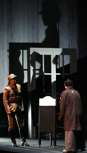 相比原著小說,舞臺上的《風(fēng)聲》敘事和人物情感更為跌宕和大線條,因此頗具沖擊力,但很多細(xì)節(jié)和人物的合理性因此略顯不足。不過,一波三折的故事情節(jié)和抽絲剝繭的謎底揭曉,始終讓全劇保持著可看性。尤其是下半場,和上半場為交代情節(jié)略顯拖沓的節(jié)奏相比,更為緊張和精彩。
