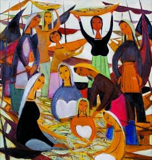 拍賣現(xiàn)場,《漁獲》作品估價(jià)是300萬至350萬港元,結(jié)果被一亞洲藏家以1634萬港元拍得。這一成交價(jià)不僅位于此場拍賣首位,且再次刷新了畫家個(gè)人世界拍賣紀(jì)錄。而成交價(jià)位于第四的朱沅芷的《最后晚餐》也以602萬港元打破畫家個(gè)人世界拍賣紀(jì)錄。