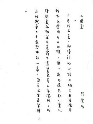 這兩個月我一直在忙著寫長篇小說《小團圓》,從前的稿子完全不能用。現(xiàn)在寫了一半。這篇沒有礙語。…… 我在《小團圓》里講到自己也很不客氣,這種地方總是自己來揭發(fā)的好。當然也并不是否定自己。