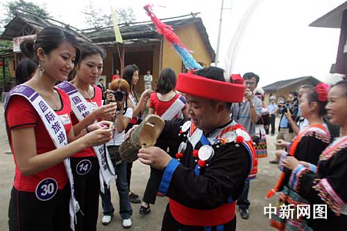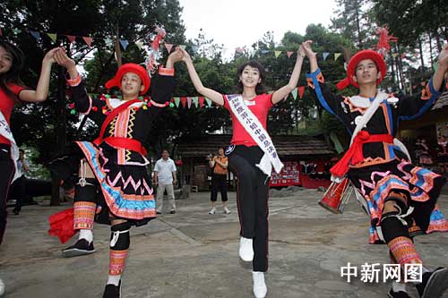 中新網(wǎng)4月26日電 (記者 應(yīng)妮)在廣東參加2009國際旅游小姐中國區(qū)總決賽的61位選手近日來到連南縣,走進(jìn)嶺南地區(qū)少數(shù)民族——瑤族生活的世界里,探尋和了解瑤族人時(shí)代生活的風(fēng)俗風(fēng)情。