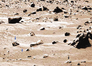 火星愛好者最近在NASA網(wǎng)站上發(fā)現(xiàn)了一張“勇氣號”火星車傳回來的火星照片,這張火星照片頓時紅遍了互聯(lián)網(wǎng),因為這張清晰的照片上,竟有一個模樣古怪、酷似人狀“頭顱”的石頭!