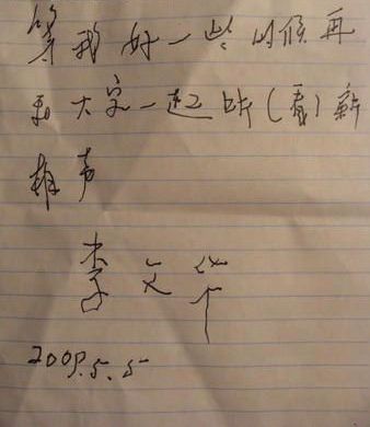 李文華生前留給觀眾的字條,上面寫道:等我好一些的時候再和大家一起聽(看)新相聲。而落款時間恰恰是李老去世前四天。