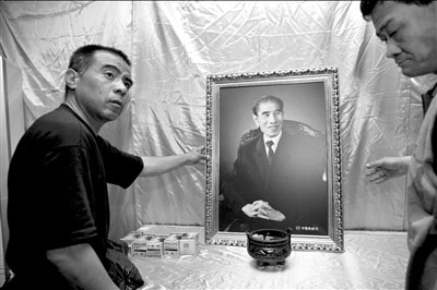 在李老家的臥室里,李文華的老伴苑福云老人在整理著李老生前的一大摞照片。老人一會兒翻看當(dāng)年姜昆、李文華合作時意氣風(fēng)發(fā)的舞臺照,一會兒又端起李文華的單人藝術(shù)照,不時念叨說:“你看他年輕時候多喜興,這張穿中山裝的就特精神!痹防细嬖V記者,靈堂中擺放的那張巨幅彩照,是中國照相館的師傅給拍的。“2005年,中國照相館專為明星拍肖像照片的師傅,現(xiàn)在看來,這張照片拍得特別好,誰也看不出他患病來,精神很振作!