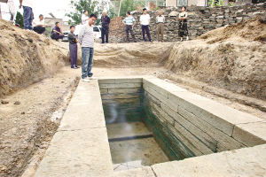 據(jù)了解,5月3日上午10時,前川街群光村一陳姓居民,率領(lǐng)施工人員在自建房屋挖地基時,挖掘機突然挖掘到青石砌成的大坑,移開青石板蓋,露出一具棕紅色棺材,現(xiàn)場人員意識到可能是古墓,立即停止施工,并報告了文物部門。