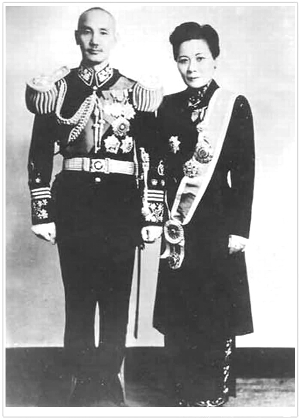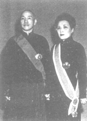 1927年12月1日,蔣介石和宋美齡舉行婚禮;槎Y分兩次進行:先在宋宅會客廳中舉行西式婚禮,后在戈登路大華飯店出席中式婚禮。大華飯店的婚禮在樂曲聲中宣告完成后,蔣介石和宋美齡來到花園攝影。在一系列由中華照相館的師傅拍攝的結婚照片上,蔣介石穿尖領襯衫、打淺色領帶,配著深色西服,胸口還別著花,宋美齡則身穿淺色旗袍,斜披白紗,頭戴一個用花蕾編成的小花冠,手捧一束玫瑰。