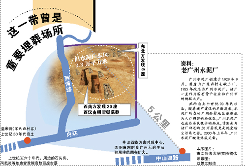廣州西灣路舊水泥廠發(fā)掘出漢代及南朝墓葬群的消息(詳見(jiàn)本報(bào)6月2日A19版)傳出后,引起許多市民的關(guān)注。這些跨度長(zhǎng)達(dá)六七百年的墓群泄露了古人的什么秘密?這么薄的土層下怎么會(huì)埋藏著這么久遠(yuǎn)的文物,而且大多保存完好?這塊地今后將用作什么用途?昨日,本報(bào)記者獨(dú)家專(zhuān)訪廣州市文物考古研究所的考古專(zhuān)家,為讀者揭開(kāi)這些謎團(tuán)。