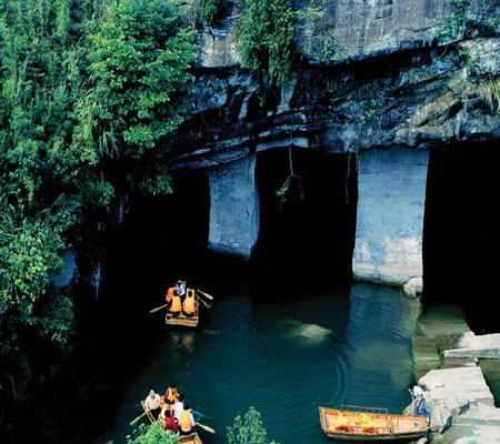 中新網(wǎng)6月5日電 安徽黃山腳下屯溪市郊,一座不起眼的高不過一兩百米的小山腹內(nèi),藏著一個(gè)大大的謎團(tuán)——花山謎窟。