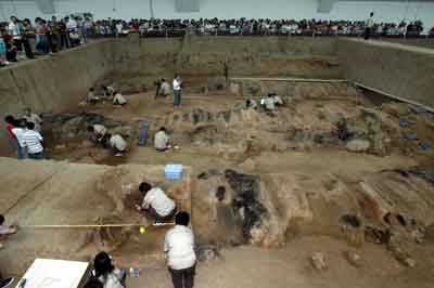 吳永琪說,考古發(fā)掘和展出相結(jié)合是這次考古發(fā)掘的一大特點(diǎn)。一號(hào)坑第三次挖掘期間,游客參觀不受影響,這種邊發(fā)掘邊開放的形式在世界上是罕見的。此次發(fā)掘地點(diǎn)臨近參觀主線路,觀眾在欣賞2000多年前古代奇跡的同時(shí),又可目睹奇跡揭示的過程,發(fā)掘地點(diǎn)將會(huì)成為博物館展示的又一亮點(diǎn)。未來幾年發(fā)掘期間,游客均可觀看到發(fā)掘過程。