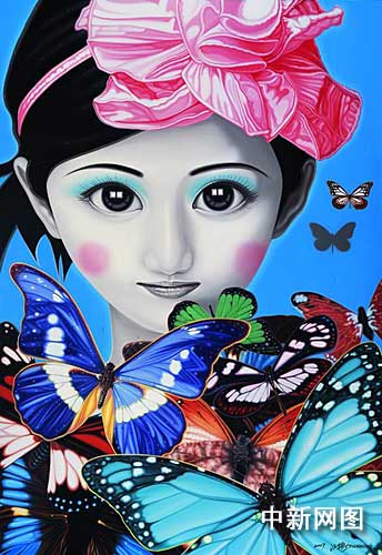 中新網(wǎng)上海六月五日電 (記者 孫璐)由上海藝術(shù)博覽會組委會、上海巴塞藝術(shù)中心等單位聯(lián)合主辦的“蝴蝶飄飄——江衡藝術(shù)作品展”,今天下午在上海美術(shù)館揭開帷幕。另類的美女造型,強(qiáng)烈的視覺沖擊,爭議的藝術(shù)評論,記者在今天開幕的這場畫展上看到的是中國青年藝術(shù)家對于現(xiàn)代藝術(shù)的深層次探索。