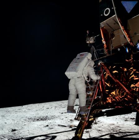 1969年7月16日“阿波羅”11號點火升空,歷時5天,于北京時間7月21日4時17分著陸艙在月球靜海地區(qū)著陸,尼爾?阿姆斯特朗和艾?奧爾德林兩位宇航員相繼踏上月球表面,開創(chuàng)了人類首次登上地球以外的另一個天體的新紀(jì)元,實現(xiàn)了人類歷史上的偉大創(chuàng)舉。阿姆斯特朗登上月球時的那句話——“這是我個人邁出的一小步,卻是人類的一大步”,成為傳頌至今的名言。“阿波羅”計劃一共實現(xiàn)了6次載人登月,12名美國宇航員登上了月球,開展了系統(tǒng)的月球科學(xué)考察、科學(xué)實驗,安裝了探測設(shè)施,采集月球土壤和巖石樣品381.7千克。