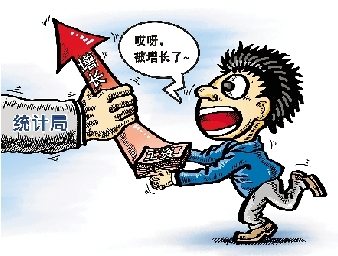 詞匯釋義:近來的新詞中,“被”字輩搶盡風頭,前有“被自殺”,后有“被就業(yè)”,如今的掌門人是“被增長”。說的是國家統(tǒng)計局近日公布的一份統(tǒng)計顯示,上半年全國城鎮(zhèn)居民人均可支配收入實際增長11.2%,農(nóng)村居民增長8.1%,遠超上半年7.1%的經(jīng)濟增速。從前大家都喊工資收入趕不上GDP增速,如今在數(shù)據(jù)上倒是真實現(xiàn)了,而且還是在全球金融危機的背景下。善于質(zhì)疑的網(wǎng)友們,更懂得拿數(shù)據(jù)說話,于是紛紛在網(wǎng)絡上曬工資。結果顯示,我們的工資根本沒怎么漲,我們的收入原來是“被增長”了,亦即口袋沒見鼓起來,卻硬要被人說漲工資了。此后,許多媒體紛紛表示,相信國家統(tǒng)計局,但不能保證下面報上來的數(shù)據(jù)是否造假。本刊之前還就“被就業(yè)”談過數(shù)據(jù)造假的誘因以及惡劣后果,所以不再詳細討論,但要強調(diào)一句話,造假數(shù)據(jù)猛于三鹿奶粉。