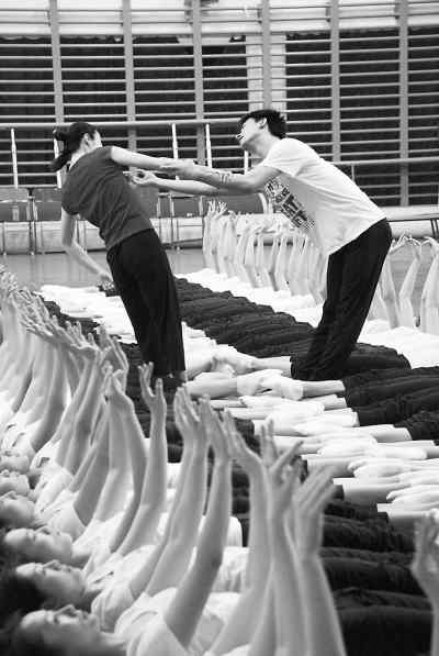 在纏綿的昆曲背景音樂中,一群著粉色T恤、頭發(fā)高高挽起的姑娘裊裊婷婷地舒展四肢,輕輕柔柔地轉(zhuǎn)身,低眉抬頭間,是那風(fēng)情萬種的笑靨……這是大型音樂舞蹈史詩《復(fù)興之路》第一章《山河祭》在中國農(nóng)業(yè)大學(xué)體育館的排練現(xiàn)場。