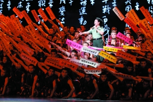 此次《復(fù)興之路》的演出共有3200名藝術(shù)家加盟。昨日記者從劇組了解到,劇中不僅有田華、陳鐸、雅坤等老藝術(shù)家朗誦,彭麗媛、毛阿敏、韓紅、蔡國慶等中青年藝術(shù)家也將獻(xiàn)上精彩的演唱等。昨日介紹排練情況時(shí),張繼剛表示,許多藝術(shù)家都放棄了收入較高的片酬和演出參加《復(fù)興之路》,這其中許多群眾演員都是解放軍戰(zhàn)士,七八月排練時(shí),他們背負(fù)著烈日酷暑在露天排練,條件十分艱苦。