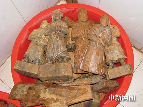 兩墓共出土文物一百二十余件,分金器、銀器、銅器、鐵器、鉛錫器、木器、玉器、墓志等,尤其是這兩座墓中均出土了木俑(武士俑、文臣俑、娛樂俑、侍俑),他們形態(tài)各異,雕刻精湛,形象逼真,在武漢乃至湖北省的明代墓葬中為首次發(fā)現(xiàn)。