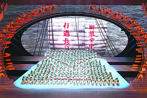 大型音樂舞蹈史詩《復(fù)興之路》藝術(shù)地再現(xiàn)了從1840年至2009年這169年歷史長路中的重要?dú)v史拐點(diǎn),形象地說明,是歷史和人民選擇了中國共產(chǎn)黨、選擇了社會(huì)主義道路,是中國共產(chǎn)黨領(lǐng)導(dǎo)中國人民走上了民族獨(dú)立和民族解放的道路,走上了社會(huì)主義革命和社會(huì)主義建設(shè)的道路,走上了改革開放和現(xiàn)代化建設(shè)的道路。