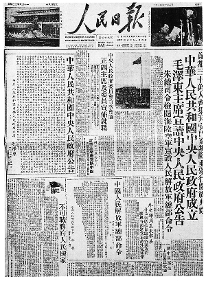 1949年10月1日的《人民日報(bào)》無論在報(bào)道內(nèi)容還是在版面布局上,都是很有韻味的。