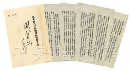 1949年 9月 21日至 3O日,中國人民政治協(xié)商會(huì)議第一屆全體會(huì)議在北平中南海懷仁堂召開,出席會(huì)議的各方面代表 662人。毛澤東主持會(huì)議并致開幕詞,他說: “占人類總數(shù)四分之一的中國人從此站立起來了。 ”會(huì)議通過了《中國人民政治協(xié)商會(huì)議共同綱領(lǐng)》,指出中華人民共和國的性質(zhì)是以工人階級(jí)為領(lǐng)導(dǎo)的、工農(nóng)聯(lián)盟為基礎(chǔ)的、團(tuán)結(jié)各民主階級(jí)和少數(shù)民族的人民民主專政國家,并為新中國的政權(quán)機(jī)關(guān)、軍事制度、經(jīng)濟(jì)政策、文教政策、民族政策和外交政策制定了總原則。會(huì)議還通過了《中國人民政治協(xié)商會(huì)議組織法》、《中華人民共和國中央人民政府組織法》,并作出決議: (1)中華人民共和國定都北平,即日起改名為北京; (2)中華人民共和國紀(jì)年采用公元; (3)中華人民共和國國歌未正式制定前,以《義勇軍進(jìn)行曲》為國歌;(4)國旗定為五星紅旗。大會(huì)選舉出以毛澤東為主席,由 180人組成的第一屆中國人民政治協(xié)商會(huì)議全國委員會(huì);選舉了由 63人組成的中央人民政府委員會(huì),毛澤東為中央人民政府主席,朱德、劉少奇、宋慶齡、李濟(jì)深、張瀾、高崗為副主席,周恩來、陳毅、董必武等56人為政府委員會(huì)委員。