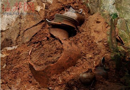 省博物院研究員林忠干勘察現(xiàn)場后認(rèn)為,這些陶瓷器所處的巖石沒有人工雕琢痕跡,堆放的陶瓷器又多為殘品,又沒發(fā)現(xiàn)杯、盤等一類祭祀常用的器物,且夾在這些器物中的泥土較為松軟,由此可斷定這些器物是由他處移到這里的,且時間并不久遠(yuǎn)。