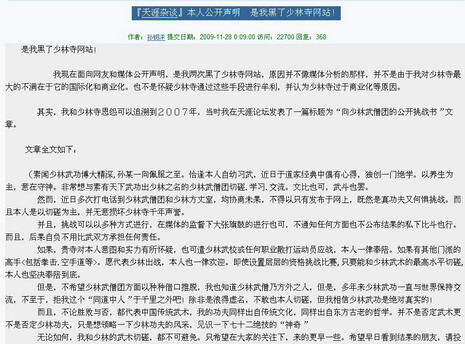 日前,網(wǎng)帖驚爆嵩山少林寺官網(wǎng)兩次被黑,發(fā)帖人自稱就是黑了官網(wǎng)的黑客,他自稱襲擊少林寺網(wǎng)站的原因就是為了逼少林武僧跟他進行比武大賽,出此下策的原因是他要求對決多次,少林寺未予理睬。