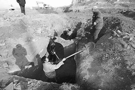 昨日,南水北調(diào)主干渠焦作Ⅱ段九里山附近發(fā)現(xiàn)一漢墓群,焦作市文物勘探隊(duì)工作人員正在對墓群進(jìn)行搶救性發(fā)掘,目前已出土有價值文物二十余件。