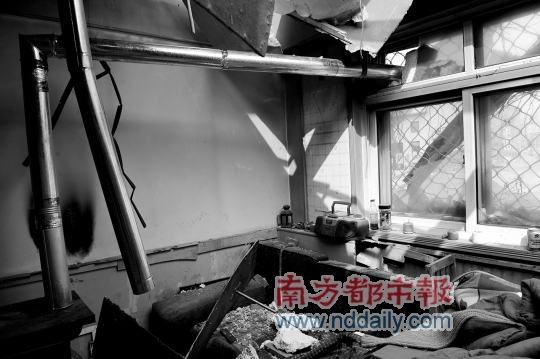2月23日,正陽藝術區(qū)值班的藝術家們,只得圍坐在炭火邊取暖。自2009年11月起,藝術家們原先租住的房屋已經被斷水斷電,而前一天,原先可生爐子居住的維權辦公室,已被不明身份的人士用大型機械掀去屋頂,房門及窗戶等均被砸爛。