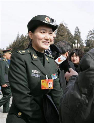 3月8日上午,參加十一屆全國人大三次會(huì)議的解放軍代表譚晶被男記者包圍采訪。 中新社發(fā) 張宇 攝